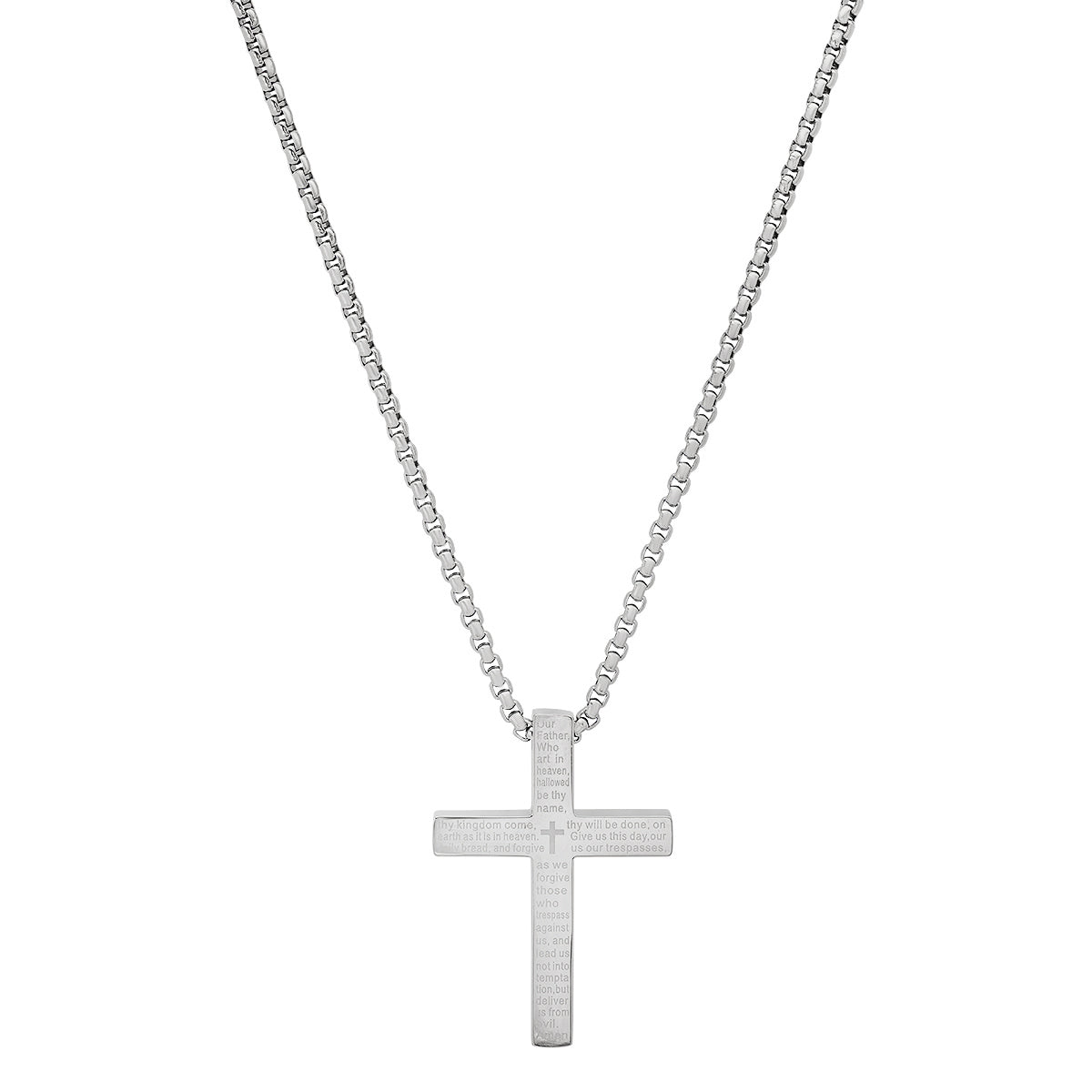 Elegant and timeless, this stainless steel square cross pendant is engraved with the Lord’s Prayer—a refined symbol of faith.