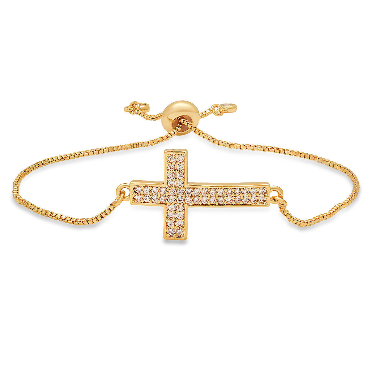 Exquisitely crafted with radiant simulated diamonds and lustrous 18K gold plating, this sophisticated bracelet effortlessly blends timeless elegance with refined faith.