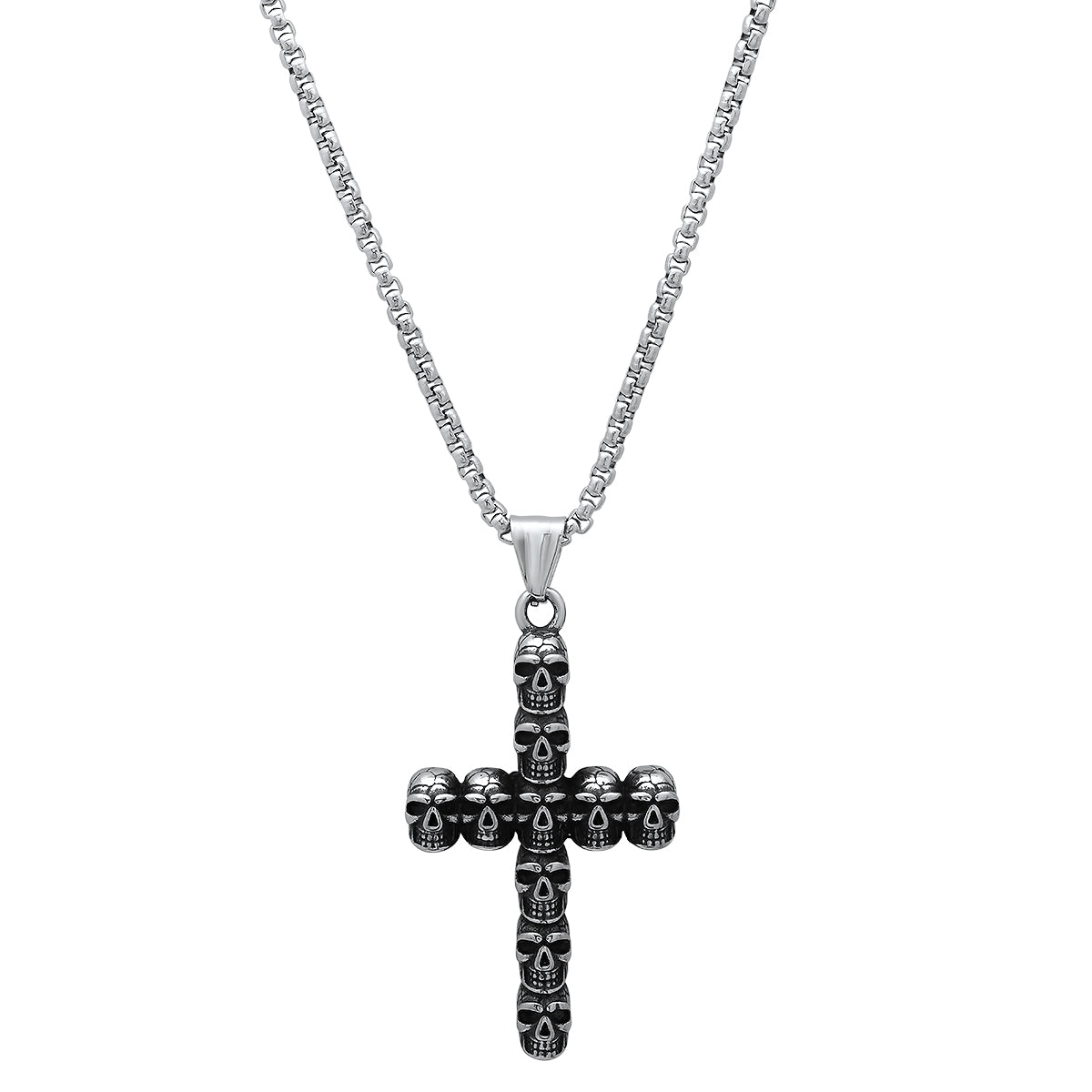 Bold and rebellious, this stainless steel skull cross pendant fuses grit and edge—perfect for making a fearless statement.