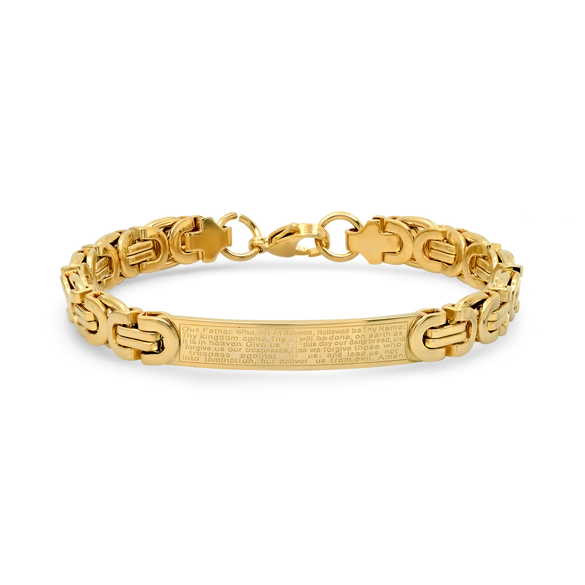 Bold meets blessed—this 18K Gold Plated Byzantine Link Bracelet pairs timeless edge with the Our Father prayer for a seriously cool statement of faith.