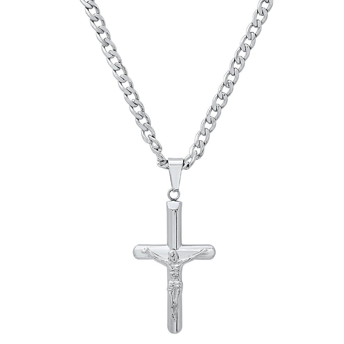 Fun and unique stainless steel tube crucifix pendant with a modern twist on a classic design.
