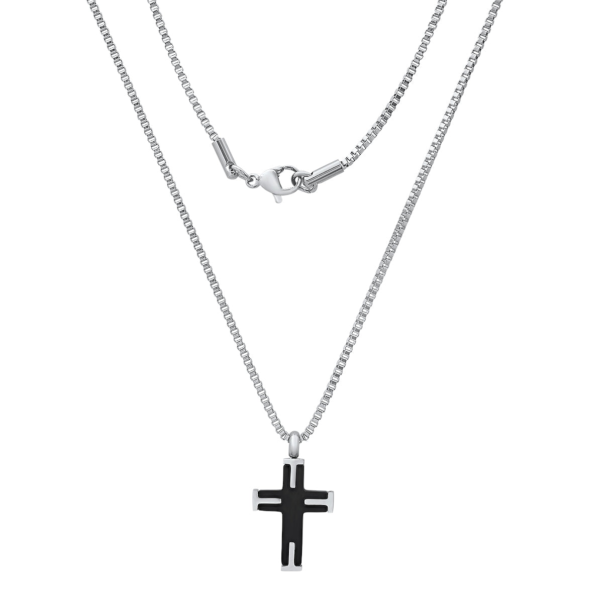 A sleek clash of dark and light, this Two-Tone Black IP & Stainless Steel Textured Small Cross Pendant packs serious style in a bold, compact design.