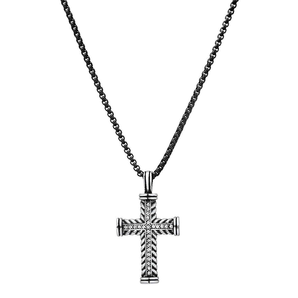 This Two-Tone Stainless Steel Braided Cross Pendant with Simulated Diamonds rips faith up with edgy braids and fierce sparkle — pure punk rock rebellion in every detail.