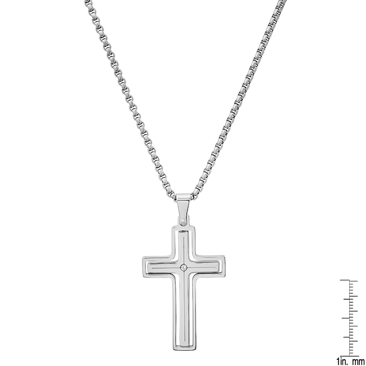 Elegant stainless steel spinning cross pendant, accented with sparkling simulated diamonds for a refined touch.