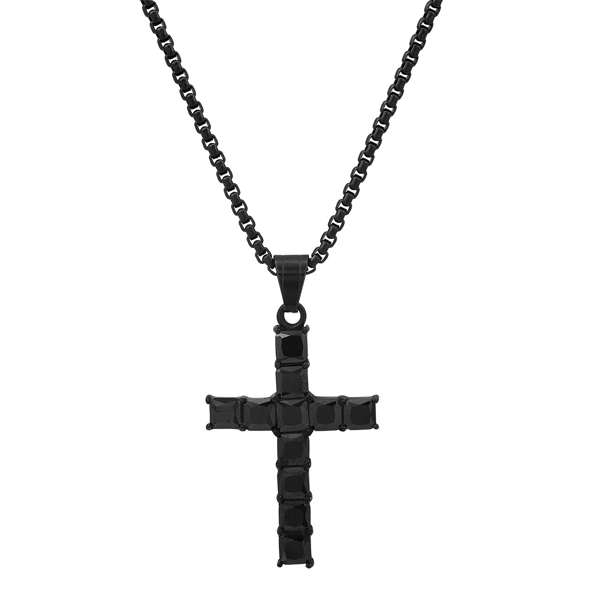 Bold yet refined, this black IP stainless steel cross pendant shines with simulated diamonds for a touch of sleek elegance and modern grace.