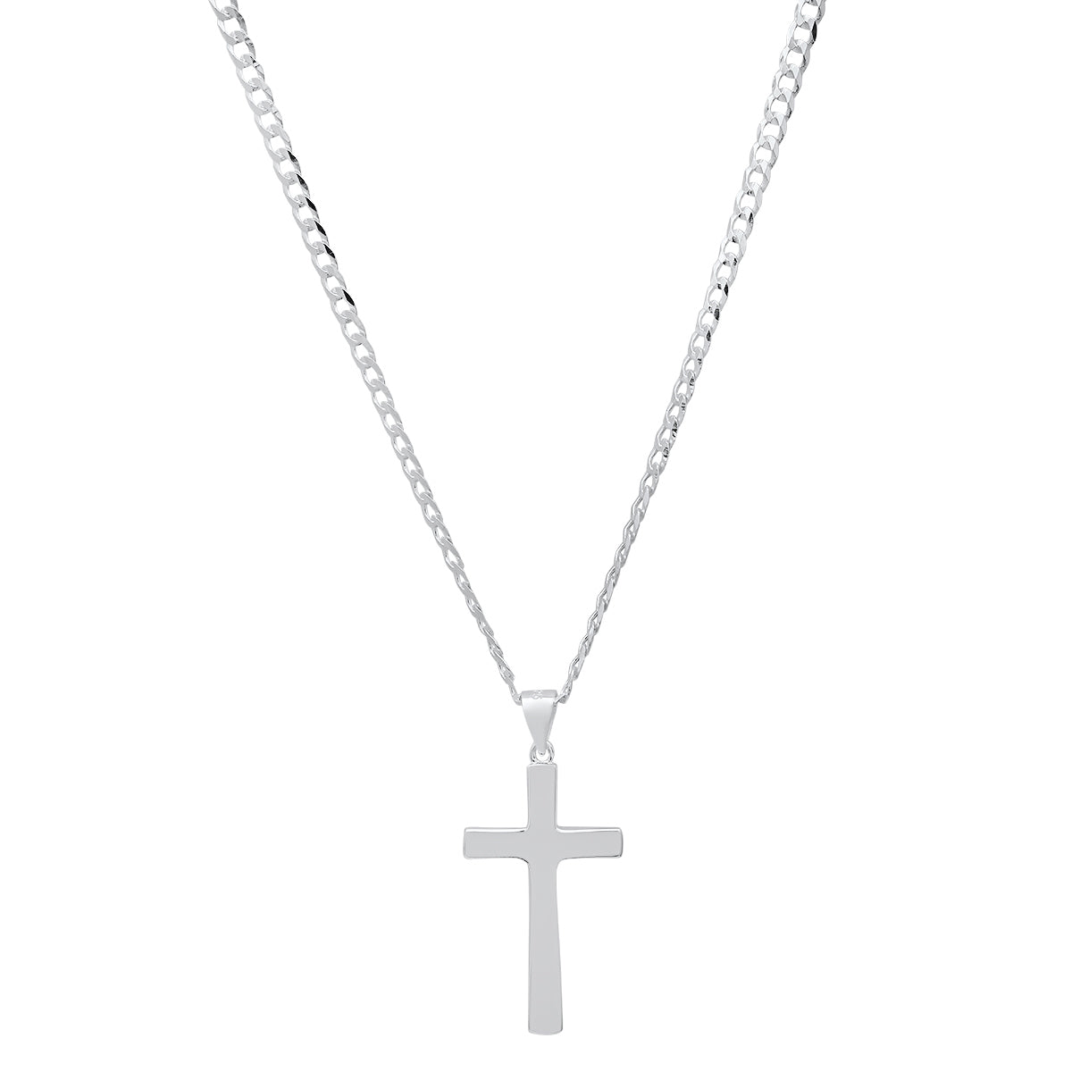 Sleek and refined, this unisex sterling silver Cuban super flat chain with cross pendant exudes timeless sophistication and style.